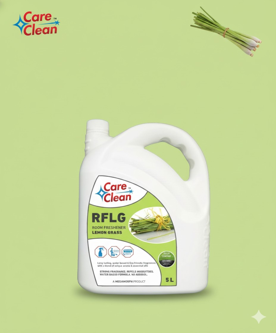 CareClean RFLG Room Freshener Lemon Grass is a water-based, non-aerosol fragrance solution formulated with a blend of unique aroma and essential oils. It delivers a strong lemongrass fragrance that provides long-lasting freshness while also helping to repel mosquitoes. The eco-friendly formula is suitable for regular use in homes, offices, washrooms, and commercial spaces. Designed for effective fragrance dispersion with minimal usage.